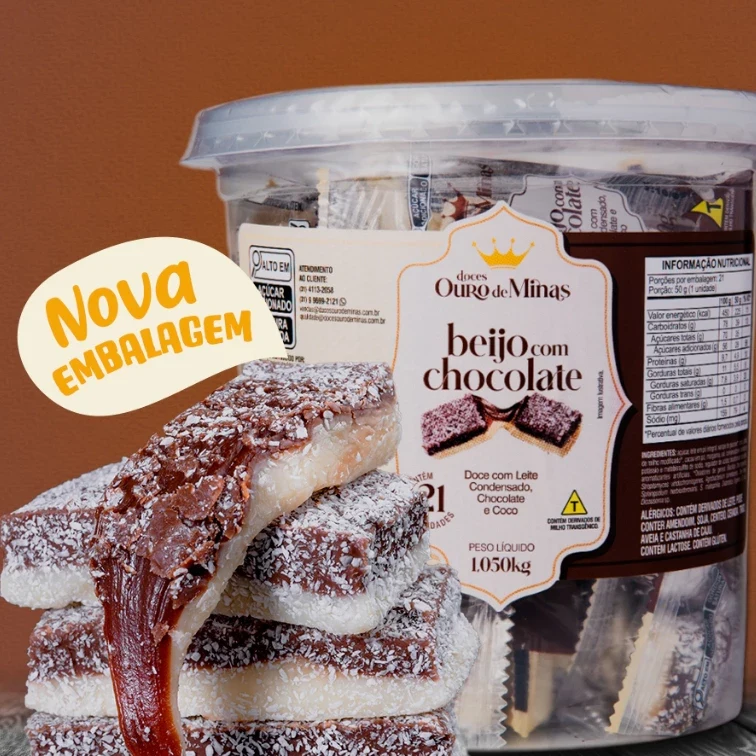 Doce Beijo Com Chocolate 1,050Kg com 21 unidade de 50g - Ouro De Minas