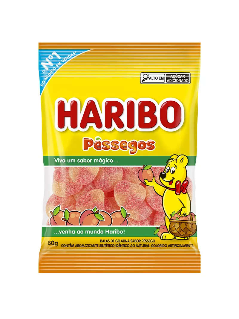 Os Pêssegos Haribo são doces, aveludados e irresistivelmente deliciosos. Experimente essa novidade! Item exclusivo Pão de Açúcar.